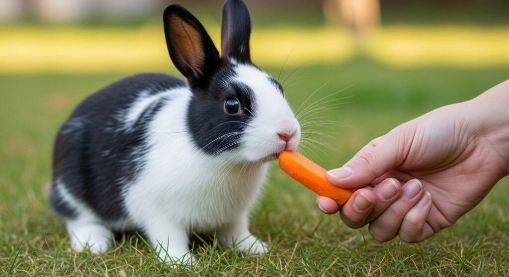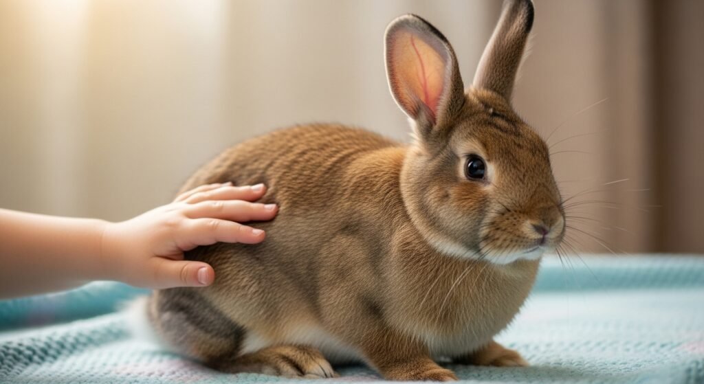 - Manejo Supervisado: El primer paso es enseñarle al niño a no levantar al conejo. Deben interactuar con él en el suelo, acariciándolo y ofreciéndole premios. Levantar a un conejo puede causarle lesiones graves si se cae o fracturas si patalea violentamente.